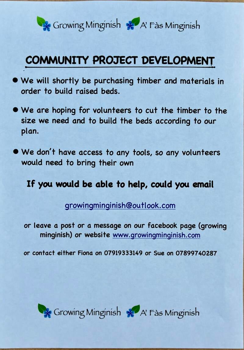 A community volunteer, Nick Hales, is going to build a bed on legs in the middle of the polytunnel to accommodate wheelchair users. We also think we might utilise one or two of the wee beds at the end as sandpits and have a children's play area.
